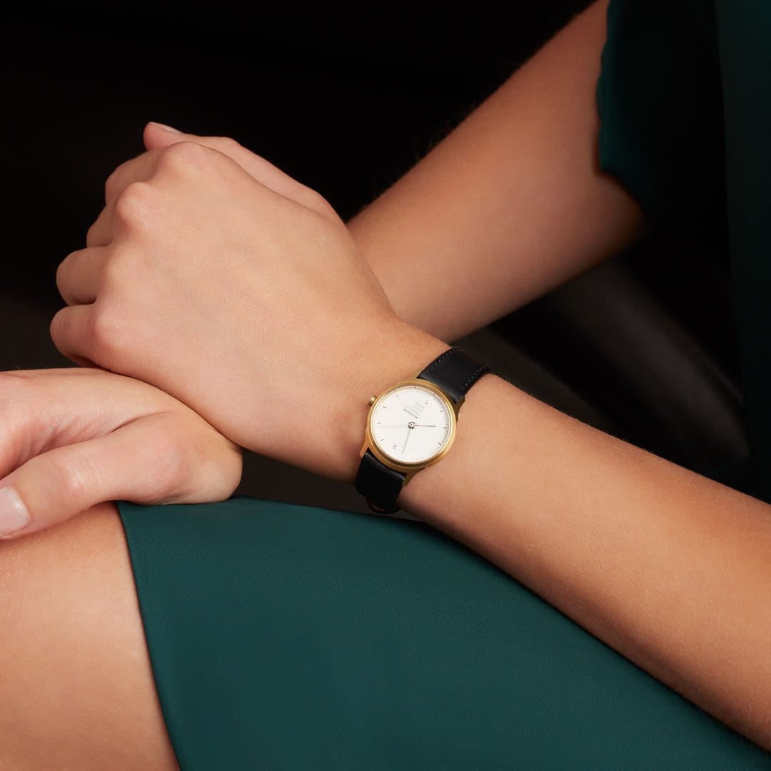 Light design. The gold-plated stainless steel case of this Mondaine Helvetica NO1 Light imparts a timeless and elegant simplicity to the watch. Thanks to its small size with a diameter of only 26mm the watch perfectly fits delicate wrists. The lightness of the design is reflected by the white dial with the tone-on-tone second hand, perfectly guarded by the sapphire crystal.