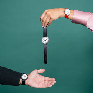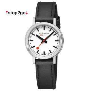 The stop2go collection not only inherits the minimalist and timeless design of the Swiss station clocks but also features a unique watch movement resembling that of this iconic clock. The distinctive red second hand of the wristwatch makes a full circle turn in 58 seconds and then waits for 2 seconds when it reaches the hour, allowing the minute hand to elegantly jump to the next minute. With its strong link to the history of the Swiss Railways clock, the stop2go is a true homage to Mondaines' Swiss heritage and design. This extraordinary timepiece invites everyone to seize the opportunity and pause time, in a world that never seems to stop moving.